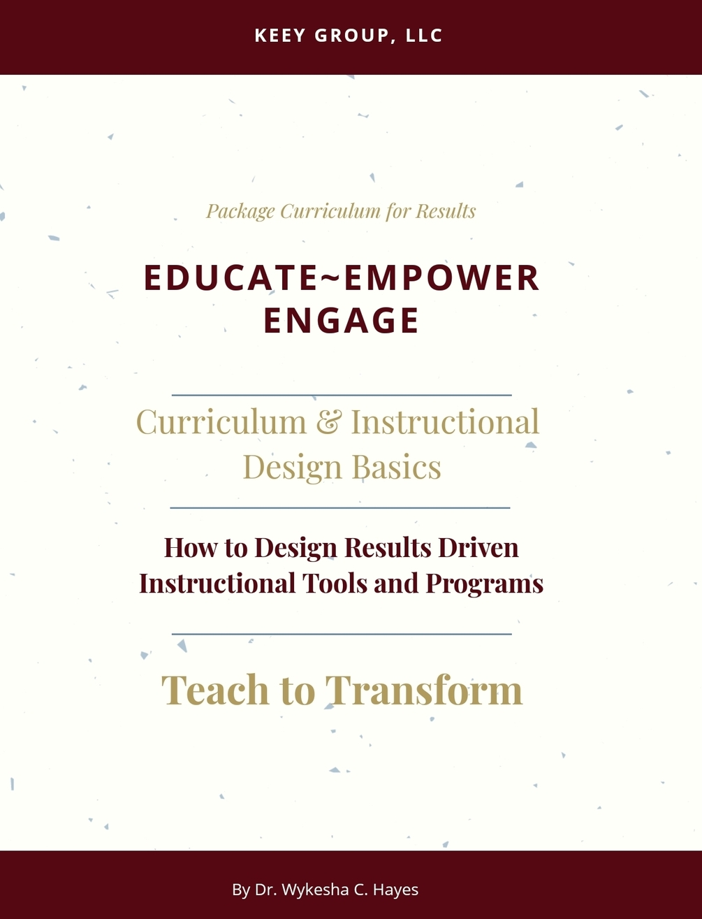 This 30 page e-guide makes designing a learning program simple but comprehensive. Dr. Hayes complied the basic techniques of instructional design to help business and entrepreneurial professionals create training programs that will transform their targeted audience. Shave lots of time off the process and prepare to improve and increase the presence, performance, productivity and profits of your learners,